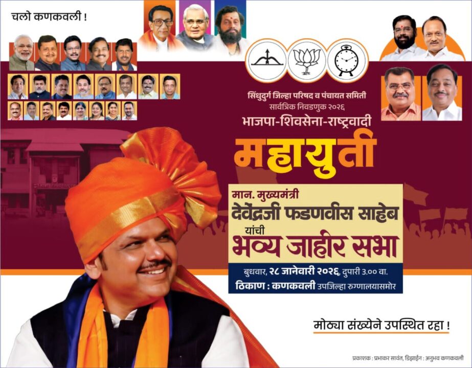 सिंधुदुर्गमध्ये जिल्हा परिषद, पंचायत समितीच्या निवडणूका महायुतीच्या माध्यमातून लढविण्यात येत आहेत. या निवडणुकांत सर्व जागांवर यश मिळविण्याच्या अनुषंगाने महायुतीने कंबर कसली आहे. गावोगावी प्रचार, नियोजनही जोरदार करण्यात येत आहे. याच प्रचाराच्या अनुषंगाने ही जाहिर प्रचार सभा कणकवलीत होत आहे. येथील उपजिल्हा रुग्णालयासमोर होणाऱ्या या जाहिर प्रचार सभेच्या अनुषंगाने भव्य स्टेज उभारण्यात आले आहे. यात जाहिर प्रचार सभेला महायुतीचे सर्व पदाधिकारी व कार्यकर्ते मोठ्या संख्येने उपस्थित राहणार आहेत, अशी माहीती महायुतीकडून देण्यात आली.