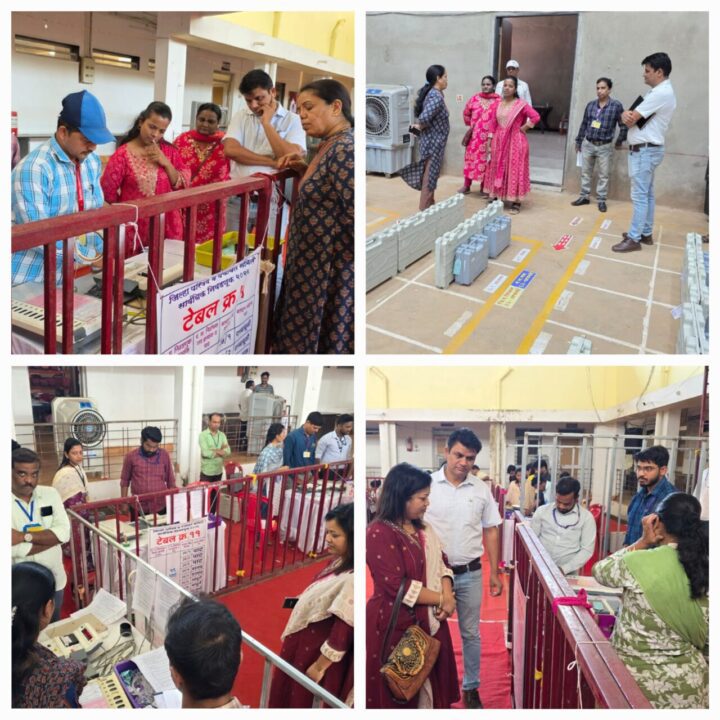 कुडाळ तहसील कार्यालयात ईव्हीएम कमिशनिंग कामकाजाची पाहणी करण्यासाठी सिंधुदुर्ग जिल्हाधिकारी तृप्ती धोडमिसे, अप्पर जिल्हाधिकारी शुभांगी साठे आणि उपजिल्हाधिकारी प्रतिभा वराळे यांनी भेट देऊन आढावा घेतला. निवडणूक निर्णय अधिकारी तथा प्रांताधिकारी ऐश्वर्या काळुशे, सहाय्यक निवडणूक निर्णय अधिकारी तथा तहसीलदार सचिन पाटील, नायब तहसीलदार संजय गवस, निवासी नायब तहसीलदार अमरसिंह जाधव यांच्यासह निवडणूक विभागातील अधिकारी व कर्मचारी उपस्थित होते.