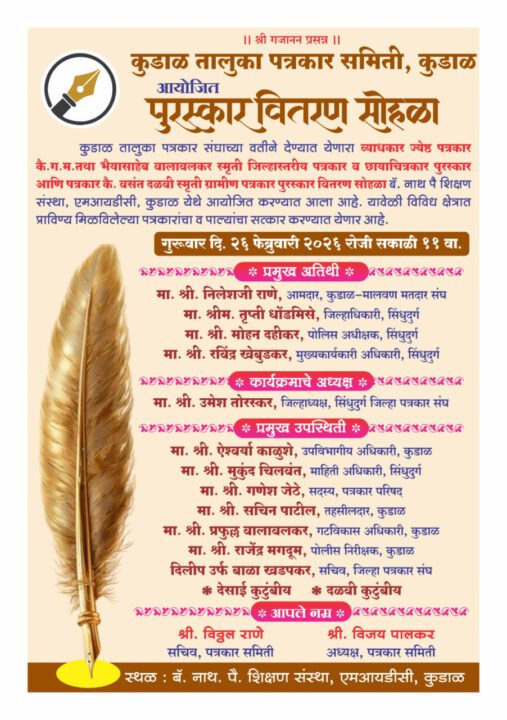 कुडाळ तालुका पत्रकार पुरस्कार वितरण कार्यक्रम कुडाळ एमआयडीसी येथील बॅरिस्टर नाथ पै.शिक्षण संस्था, कुडाळ एमआयडीसी येथे पार पडला.यावेळी प्रमुख पाहुणे म्हणून बोलताना श्री.देसाई यांनी सूचक वक्तव्य करत राजकीय वर्तुळात चर्चांना उधाण आणले.