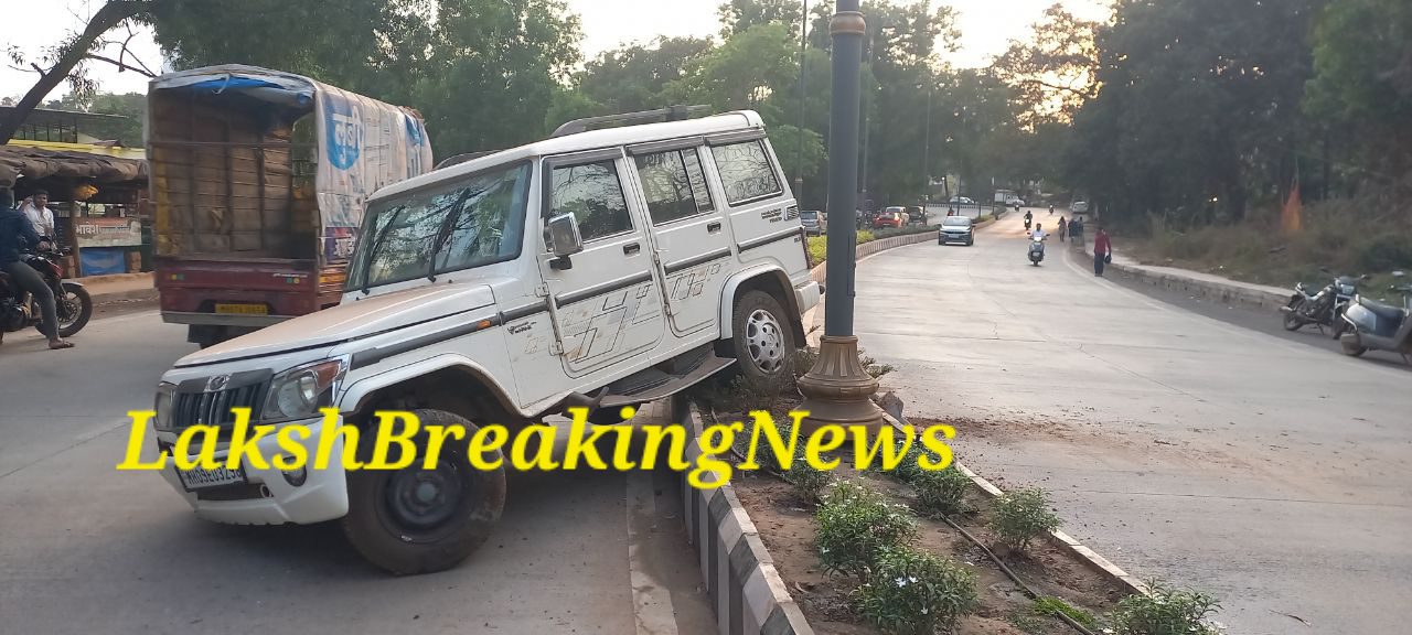 अनियंत्रित बोलेरो जीप थेट दुभाजकावर धडकली